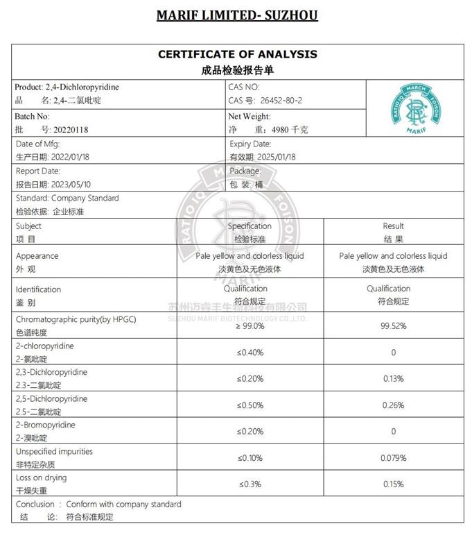 產(chǎn)品詳情: 中文名稱:2,4-二氯吡啶|26452-80-2|2,4-二氯吡啶廠家|